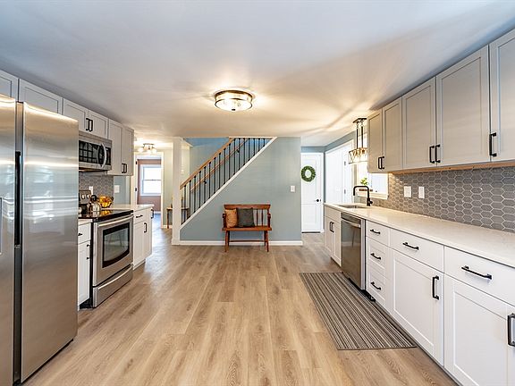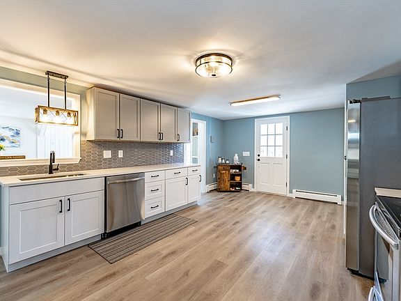 Welcome to this beautifully renovated 5 bed, 2 bath Colonial in Southwick, MA. The large front porch invites you into the home and leads directly into the large kitchen that features quartz counters, on trend tile backsplash, stainless appliances, and new cabinetry. This fantastic space seamlessly transitions into the dining area with French doors that open to the back deck – ideal for entertaining. The main living area boasts details including built-ins, and a picture window with a window seat, flooding the home with natural light. Two spacious bedrooms and a renovated full bath complete the main level. Upstairs offers more great spaces including a family room with wet bar, and a sitting area with a balcony overlooking the yard! Completing the upper level is a primary with walk-in closet, two more large bedrooms and a full renovated bath. Features include a new roof, new septic system, new on-demand heating system, and more! Just move in and enjoy! Schedule a showing today!