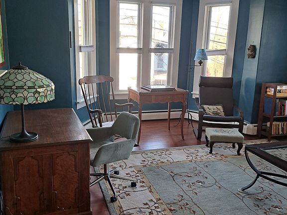 Lovely apartment with a grand stairway, front door private entry in an 1850 Victorian. The living room has bay windows and a decorative fireplace with a view of Mt. Wantastiquet. It is fully furnished with a fold out couch in the living room, hardwood floors and air tight vinyl windows. The house has been well insulated. There is air conditioning, air tight vinyl windows, and cellular shades. It has two off street parking areas with an in-house laundry. The tenants are quiet and the landlord lives on site. Grove Street is an ideal in-town location. It is in a nice residential neighborhood, just one block from the post office, the library, a bus stop and main street. There are coffee houses, restaurants, galleries, movie theater, food coop and museum within a 5 to 10 minute walk. It is also a short walk to the Retreat woods where you can ski or hike to the Conneticut River where you can canoe or kayak. Owner pays for heat, water, internet and plowing of driveway. Tenant pays for electric. The lease is from November 2nd to May 1st and it's possible to renew. There is no smoking allowed. The tenant takes their trash and recyclables to the curb to be picked up by the town weekly. They are responsible for shoveling the walkway to their private entrance. (Neighbors are available to help with this.) Subletting is not allowed without the written permission of the landlord.