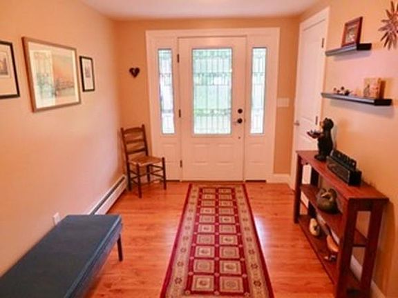 PRETTY AS A PICTURE is this Cute, Comfortable and Cozy Ranch that you will call home for years to come! Large remodeled Kitchen with oak floors, granite counters and stainless steel appliances. The Family Room off the Kitchen is comfortable with oak floors, recessed lighting and built in a/c Access to the huge deck and yard from the Fam.Rm. Nice oak floored entry is a warm and welcoming area. Master Bedroom is large with a cozy wood burning fireplace, oak floors, wall a/c and access to the huge deck. Master Bathroom has a soaking tub, tiled flooring and double vanity sinks. Two more Bedrooms have oak floors and closets. The open air deck overlooks the open and wooded backyard. Walking path around the perimeter of the yard some cute stone walls and a fun fire pit area. Newer shed too. Two car garage and beautiful landscaping!