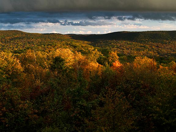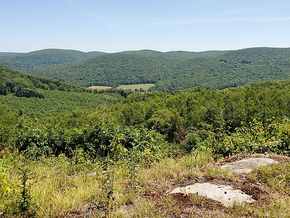Panoramic views of the Housatonic Valley overlooking 4 Towns! One bedroom 1 1/2 bath country home in a very private location bordering thousands of acres of preserved land including the Appalachian Trail Corridor. On a Town-designated scenic road. 16.2 acres of lightly wooded and meadow rolling land. Radiant heated 30' x 30' (11 ft. ceilings) first level garage. White oak 3",5",7" width flooring and lots of windows. 10' x 20' deck to enjoy the seasons and sunrises/sunsets. Full bath upstairs and half bath in garage area. Economical propane heat and cooktop. Potential for horses and livestock in meadows. Several potential sites for construction of the main house while using the existing house as a guest home. Underground 400 amp service and 4 bedroom existing septic system.