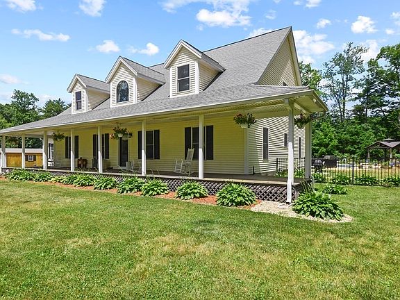 Contemporary Cape w/IN-Law!!! This stunning 5 bed, 4.5 bath home on 7+ acre wooded lot has room for EVERYONE!! Enter into a living room with beautiful vaulted ceilings, HW and open floor plan to the kitchen w/large granite island, s/s appliances, dining area, & slider to back wood deck. Laundry rm & half bath right off kitchen. 1st floor primary bed offers HW and full bath with dbl granite vanity sink, spacious walk in tiled shower and walk in closet! 2 more bedrooms and another full bath with jetted tub along with access to your 3 car oversized garage and IN-LAW with large and open kitchen/dining room with vaulted ceiling, 2 ext doors, a bedroom and full bath! Upstairs is a cat walk style hallway that overlooks the kitchen/living room along with another substantial bedroom with ensuite, vaulted ceuling and walk in closet. Family room AND a bonus room/office with 2 closets – YOU decide! Outdoor OASIS features fenced in backyard with salt water pool, firepit, outdoor kitchen and more!!!