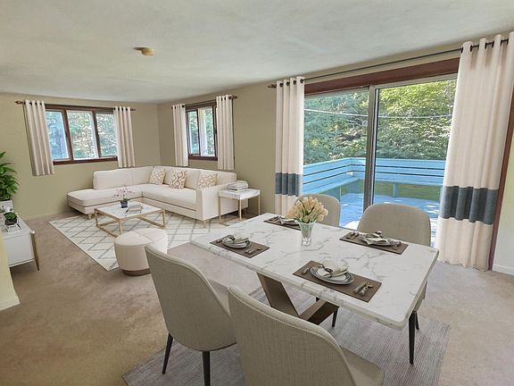 Wide windows and sliders bring an abundance of natural light into the main living areas all day long. Spacious living and dining rooms easily access wide sliders to an open deck and level lawn. The kitchen offers ample storage. First floor bedroom with adjacent bath. Upstairs the large master features wide sliders to a private deck. Second bedroom up with adjacent bath. The attached garage and full basement provide ample storage and areas to create a workshop or hobby area. Some TLC required. Easy commuting to Concord or the Upper Valley. Enjoy the fantastic family-friendly Lake Sunapee region with lakes, mountains and Vail-Mt. Sunapee Ski Resort just minutes away! Available for immediate occupancy.