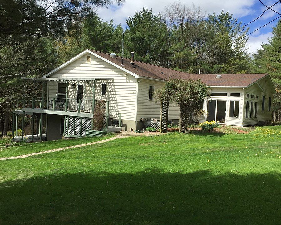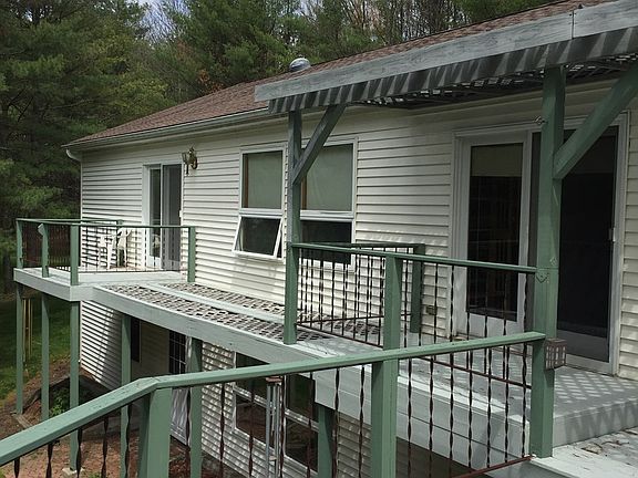 Tranquil setting is what this spacious home offers on 12.12 manicured acres. Come relax in your 4 season sun room with radiant heat flooring, Bright open flowing living space. Spacious modern kitchen with ample cupboard space and an island. Large bedrooms. 2.5 baths. Attention to detail throughout this home Wrap around deck perfect for entertaining. Lower level has a large living room and bedroom. Attach 26x13+ work shop on L/L. Sit under the stars by the wood stove. More room under the deck for a hot tub and out door fun!. Detached 2 car garage & a 30x40 pole barn and room to garden.