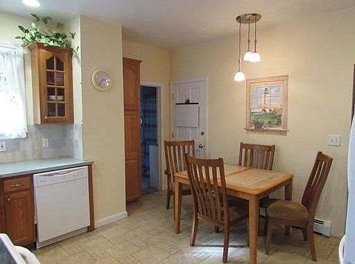 Charming New England three bedroom colonial with many updates. Eat-in kitchen offers brand new range and dishwasher. Included washer and dryer are conveniently located in pantry area, directly off the kitchen. Mudroom leads to large deck overlooking fenced back yard with shed. Dining room has electric stove which can be easily converted to coal or wood. Three spacious bedrooms are on second floor, den on first floor is currently being used as 4th bedroom. Newer roof, double hung windows and maintenance-free vinyl siding! Perfect for the first-time buyer, this home is priced to sell and ready for your personal touches. Welcome Home!