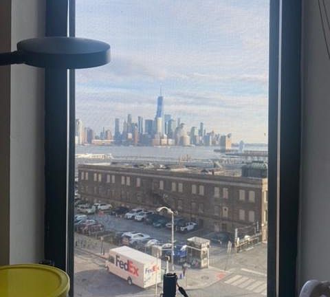 Luxurious penthouse studio on Hudson Street with southeast facing bay windows show fabulous NYC views with a skylight to let in tons of sunlight, AC/Heat, dishwasher, marble bathroom, and hardwood floors. This unit has a great efficient layout since it is lofted with a ladder to another above space to be used as a sleeping area or tons of extra storage. Directly across the street from PATH, NJ Transit and NY Waterway Ferries... Elevator Building & laundry on premises. Available June 1 2022 only. No pets. Broker fee equal to one month rent to be paid by new tenant. No in person showings, ask for a virtual tour.