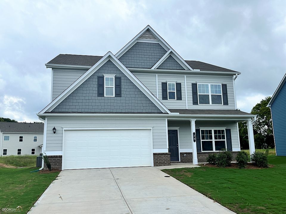 Move in Ready July 2023! The Ellijay plan in the Jackson Farm community built by Smith Douglas Homes. Jackson Farm's new community swimming pool opens in May! This two-story floorplan welcomes you with wide foyer and grand dining room to accommodate get-togethers, while the adjacent kitchen with a large peninsula overlooks the breakfast area and family room. Family room features our new linear fireplace! The kitchen has upgraded gray cabinets, tile backsplash, a walk-in pantry, gas cooking/stainless appliances and granite counters. A study for in home office completes the first floor. Upgraded Vinyl plank flooring on the main level. Yard has a patio for outdoor dining. Second story with Owners suite with a large tiled shower and three spacious bedrooms, each with a walk-in closet,two full baths and a large laundry room. Both floors have nine ft ceilings. Photos are virtually staged are representative of plan not of actual home being built. Smith Douglas Homes is the #1 private builder in the Atlanta area. Ask about our Seller inventives with use of preferred lender.