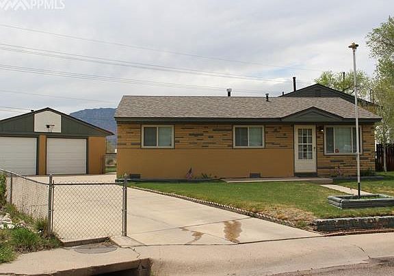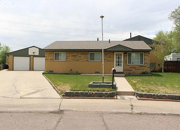 Ready to move in spacious rancher that shows pride of ownership. 14,000 sq ft cul-de-sac lot, oversized 2-car detached garage w/ built in cabinets & shelves, RV gate and large covered patio with great views of the Peak. Updated kitchen new cabintry & stainless steel appliances. Huge garden level family room with wood burning fireplace. Central air & all appliances included.