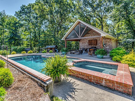 This appealing 4 bed 2 bath custom built home with an office has many beautiful features, stained concrete floors throughout, high cathedral ceilings in living area finished with stained wood and matching wood trim throughout, and brick island with granite counter top in the kitchen just to mention a few. It is situated on 7 peaceful acres away from the hustle and bustle of the city, but is only a 20 minute drive to all the convenience of Madison. This property also has the added attributes of a beautifully landscaped outdoor area with an in ground pool, hot tub, and pool house!! There is also a charming custom built play house plus a basketball court. Did I mention horses?! There are also two pastures on both sides of home for your horses to roam. Call your favorite agent today for a private showing.