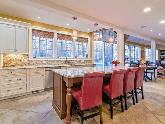 This dream home has it all! The interior space was renovated in 2012 with additional sq ft added as well as the third garage. Gourmet kitchen with 6 burner Wolf cooktop, double ovens, wine cooler, Sub-zero, granite counters, island, pantry and office area. Family room features floor to ceiling stone fireplace, custom built-ins, cathedral ceiling with wood detailing. There's plenty of room for everyone with 5 large bedrooms and 3 full baths. The master bedroom retreat has a large walk-in closet with additional storage. The third floor consists of two bedrooms with built-ins, window seats, a full bath (2018 installed) and a study.The basement finished area includes a playroom, exercise room and office. The exterior space was renovated in 2013 and features a heated in-ground pool with retractable cover surrounded by a paver patio, hot tub, outdoor shower, fire pit, covered outdoor kitchen with granite counters and a double sided fireplace, lighted basketball court. Additional features include audio speakers inside and out, central vac and a generator hook up. Too much to list! Subject to bankruptcy court approval sold as is.