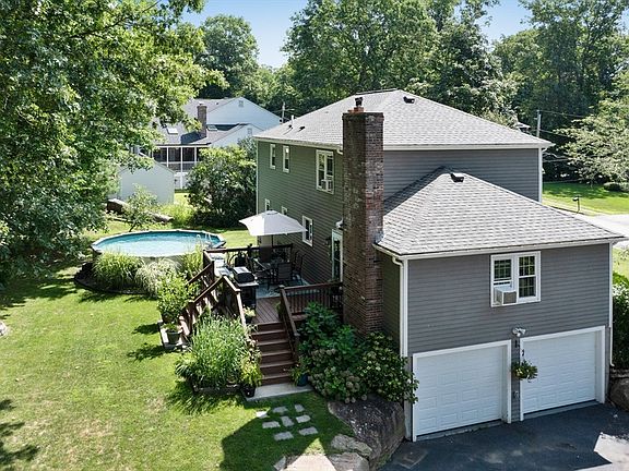 Welcome to 72 Kerry Lane! Come see this charming 4 bedroom 2 1/2 bathroom featuring two additional rooms that can be used for bedrooms/den or in home office. Large primary bedroom includes walk in closet and full bath. Three more bedrooms and a full bath are included on the second floor. First floor has half bath and laundry. The open concept dining and kitchen leading to a front to back brick fireplace family room is perfect for family holiday gatherings. The home features recent roof and windows. The level and open wooded backyard features a new oversized deck and heated above ground pool for family fun and entertainment all in the highly sought after Whitin Woods neighborhood. Don’t miss this opportunity, location is everything! Highest and best Offer, by Sunday, Sept 15, 2024 at 7:00 pm.