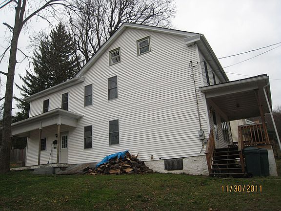 Weatherly Single- features a modern interior with upgrades including a newer roof and siding. Set on a corner lot with a detached, two-car garage and large yard area. The interior has a modern kitchen and bath, nice family room with a wood pellet stove; 3 bedrooms with semi finished attic (no heat) for possible fourth bedroom Located close to park, schools, and other conveniences. Ready to move in