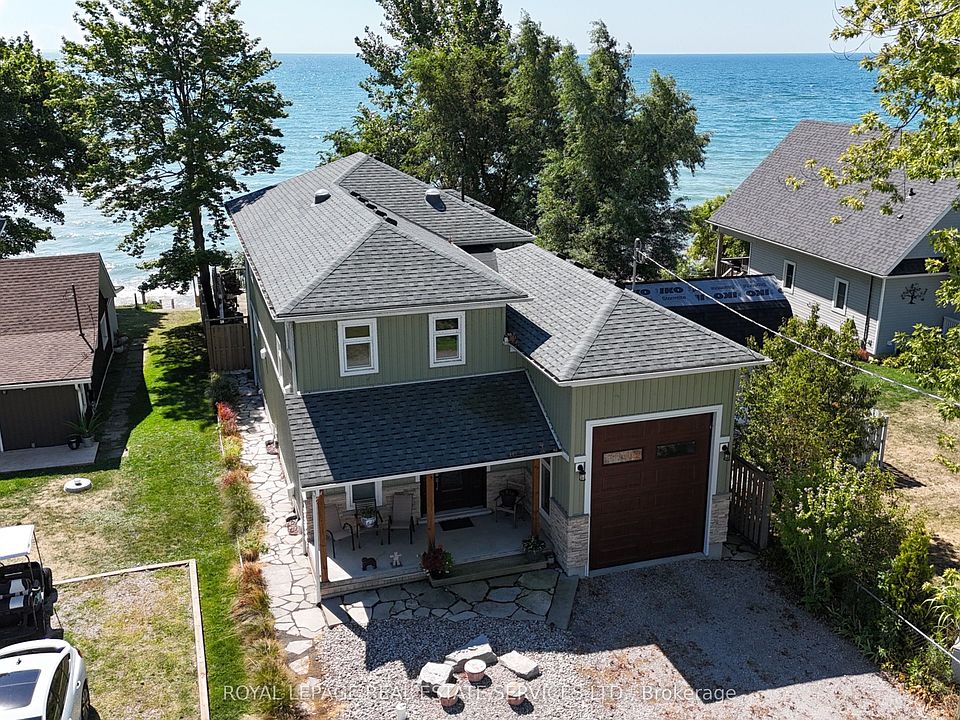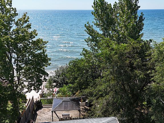 Your Waterfront Dream in Peacock Point!This custom-built lakefront masterpiece, crafted by Struans Building Group, is nestled in the heart of Peacock Point, one of Haldimand Countys most charming waterfront communities. From the moment you enter, youll be captivated by the unobstructed, panoramic views of Lake Erie that set the tone for this truly unique home.Originally a cherished family cottage for 15 years and now a year-round residence, this 3-bedroom, 3-bathroom home sits on a meticulously landscaped lot featuring flagstone walkways, multiple entertaining decks, and a private winding staircase leading directly to the lake.Inside, youll find 9' ceilings, red oak hardwood flooring, and quartz countertops throughout. The chefs kitchen seamlessly flows into the sun-filled living area, anchored by a custom fireplace built with live-edge wood from the owners farm and sandstone from the Niagara Escarpment.The luxurious primary suite offers the ultimate retreat with an infinity-glass balcony overlooking Lake Erie, a see-through fireplace, a bubbler tub, and heated bathroom floors.The oversized garage is a rare find, boasting 16 ft interior height and 24 ft depth, perfect for your RV, boat, or recreational vehicles. A separate back entrance and concrete staircase to the basement add convenience and functionality.Whether youre looking for a peaceful full-time residence or the ultimate lakefront getaway, 72 Lakeside Drive offers the perfect blend of craftsmanship, comfort, and waterfront living.Dont miss the opportunity to own this one-of-a-kind home in Peacock Point!