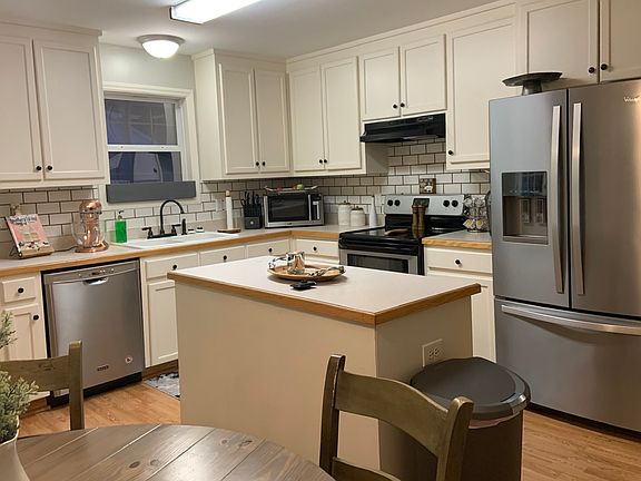 An adorable ranch with NO HOA! 3 bed 2 bath. Beautiful curb appeal with rocking chair front porch and wonderful back deck for entertaining. Great kitchen with SS appliances, backsplash, island, and breakfast area. Wood burning fire place in living room. Master bedroom with vaulted ceilings and master bath with dual vanity. Small shed for storage out back. Don't let this one slip by! Refrigerator, counter top microwave, washer, and dryer stay with reasonable offer!