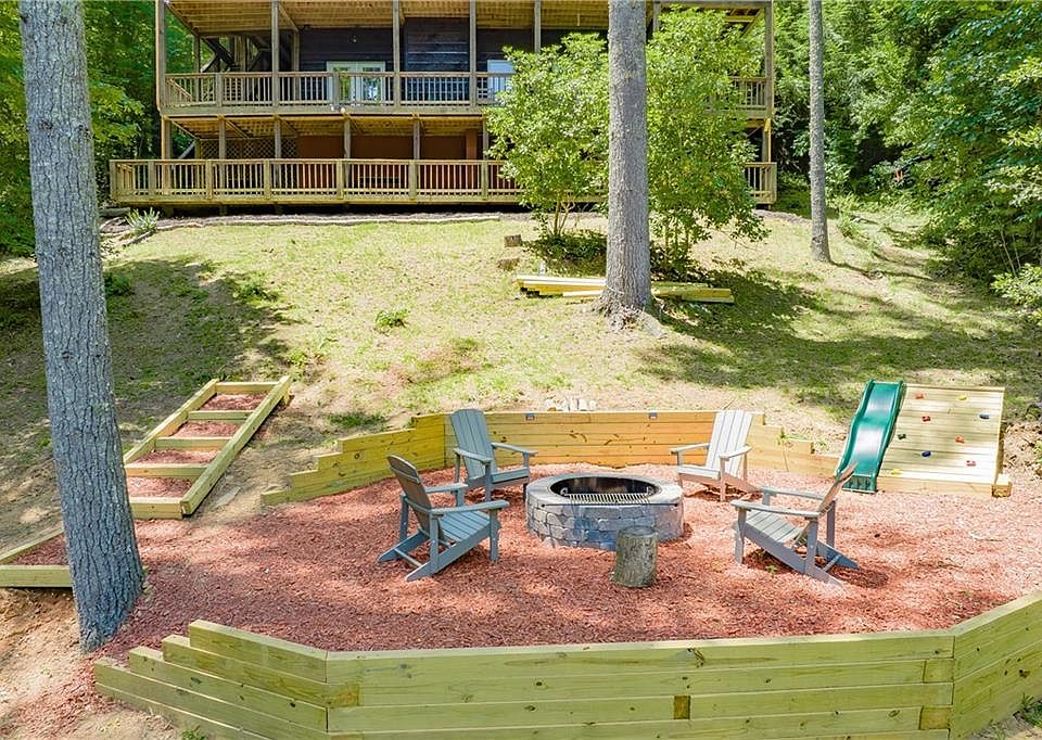 Escape to the North Georgia Mountains just 1-2 hours north of Atlanta. This beautiful 4-season cabin in the Suches Valley overlooks a private pond with seasonal views of mountains. This 5 bedroom, 3 full bath retreat with a finished basement is finished throughout with rough sawn walls, pine floors, natural bark details and two fireplaces. With three levels of open decks and one side screened deck, there is plenty of room to enjoy the outdoors without leaving the house. Enjoy the hot tub, fire pit, choice of two grills or fishing in the pond. This cabin is ready for you to move in or use as a short term vacation rental and comes fully furnished. Property backs up to the Coopers Creek Wildlife Management area. 30-45 mins to downtown Blue Ridge, Blairsville or Dahlonega.