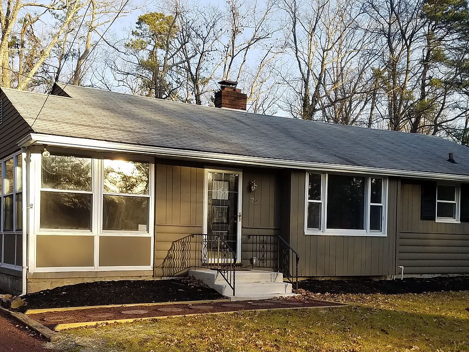 The rare Medford Lakes Rancher; this one does not disappoint. Beautifully maintained and updated. As you enter the front door you are greeted by a large living room with a wood burning fireplace, a large picture window that provides plenty of natural sunlight and original hardwood floors and newer vinyl replacement windows throughout. The accent wall of knotty pine paneling offers the true Medford Lakes experience. You will enter the updated and large kitchen area with granite counter tops and stainless-steel appliances that also has a first-floor laundry room with washer and dryer just off the kitchen with a door to the backyard. Also off the living room is a fun year-round sunroom with newer windows perfect for your morning coffee or evening wine. This room would be a perfect family room or home office, surrounded by three walls of newer windows and is heated. In the bedroom wing, you will find all three first floor bedrooms and access to the attic. All bedrooms feature hardwood flooring. The master bedroom is large and easily accommodates a king size bed, bedroom number two is also a large room and bedroom three can be used as a bedroom or nice size office or nursery and for the ultimate convenience, the full bath is located between the bedrooms. The backyard is large and fully fenced for children or our furry friends. Also, in the backyard you will find a Full Home Generator so you will never have to worry about a thunderstorm or power outage again. While others may lose power, you will be fairing the storm in style. Location, location. Centrally located, you can bike to the beaches, playgrounds, schools, ball fields and community center. This home is move in ready and will not last long.