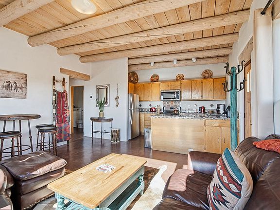 Taos Adobe Sanctuary With Unobstructed Mountain Views ~ Set on a peaceful two-plus acre parcel with easy paved access, Casa De Alfarero is a masterfully built adobe that perfectly balances high-desert seclusion with fine Southwestern architecture. Currently operating as a successful short-term rental with income potential, this property represents a turnkey opportunity in the heart of El Prado Arroyo Hondo Mesa, or the perfect sized full-time residence. The interior is defined by authentic craftsmanship, featuring high ceilings supported by massive vigas, classic Mexican tile mosaics, radiant floor heating, and an open-concept layout centered on unobstructed, dead-on views of Taos Mountain. Bordering sovereign Taos Pueblo land to the south, the residence enjoys permanent, wide-open southern exposures and views that maximize the natural light. The grounds are fully equipped for the modern traveler or outdoor enthusiast, offering a brand-new hot tub for soaking and stargazing after a long day on the slopes, an EV charging station for your electric vehicles, and a substantial outbuilding that serves as a gear shop or versatile storage, maybe something more if one desires. Positioned at the nexus of the region’s premier recreation hub, the home is minutes from world-class terrain at Taos Ski Valley in one direction and the John Dunn Bridge at the Rio Grande National Monument in the other, providing immediate access to rock climbing, whitewater rafting, fishing, natural hot springs and more. A short drive connects you to downtown Taos to experience the historic plaza’s rich culture, boutique shopping, and delicious local food, making this a rare, sanctuary that hits the sweet spot for both real estate investors and lifestyle buyers. Don't miss out on this sweet Southwest hide-out in Northern New Mexico.