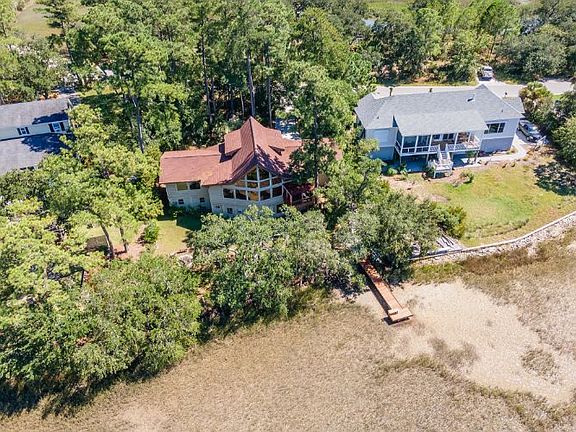 Own paradise in one of Beaufort's most desirable neighborhoods, Lost Island. Welcome to this unique Lindal Cedar Home and experience breathtaking sunset views, a private dock, and the WOW factor throughout this well-cared for tidal retreat. The soaring ceilings, beautiful design and custom post-and-beam construction make this home a one-of-a-kind standout. The large open floor plan is ideal for family gatherings and entertaining and the floor to ceiling windows bring outdoors in and maximize the expansive views. In addition to the spacious living area, the main level boasts of a large, well-equipped kitchen and pantry, 2 ensuites, an additional bedroom and bath, laundry room, and screened porch. Choose how you will use the 2nd floor loft, full bath and oversized closet. Options await!
