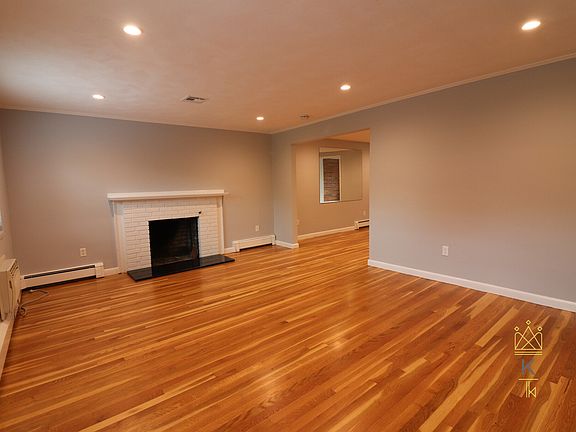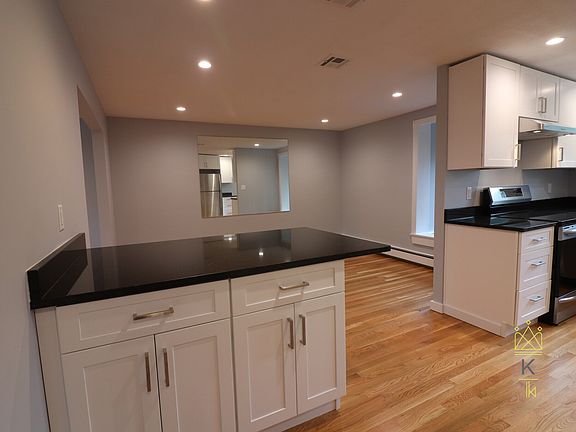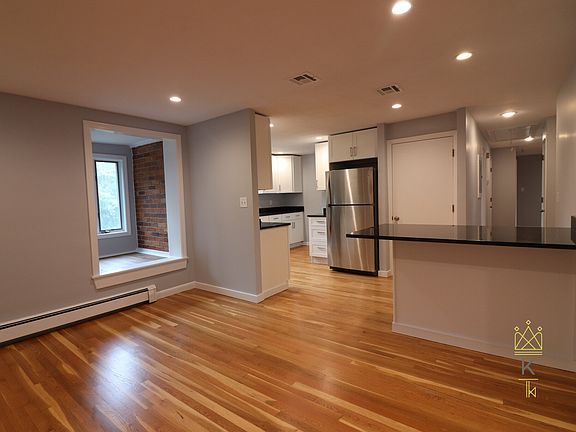 Step into this spacious and modern 3 bedroom/ 2 bathroom apartment and enjoy just refinished hardwood floors throughout, plus newly updated bathrooms and brand new kitchen with stainless steel appliances. Charming details like exposed brick in the reading nook and decorative fireplace. And modern conveniences of all new appliances, in unit laundry, and central A/C. Large windows let in excellent natural light throughout the unit. Savor those warm summer evenings on your back deck. Driveway parking for two cars is included in the rent. This lovely apartment is situated on a quiet residential street but is less than a 5 minute drive to The Street, Chestnut Hill Mall, and Wegmans. No pets please. Available now.