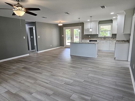Step into this like-new gem, where modern charm meets thoughtful design! Completely reimagined with a reconfigured floorplan and total makeover, this spacious and bright 4-bedroom, 2-bath home sits on just under an acre—perfect for downsizers, first-time buyers, or savvy investors. Located just on the edge of town, you’ll enjoy the peace of country living with the perks of being close to shopping, dining, hospitals, and retail. The open, split-bedroom layout offers the perfect balance of privacy and entertaining flow. The kitchen is a true centerpiece, featuring stainless steel appliances, granite countertops, and a large island wrapped in shiplap with an oven that not only offers additional cabinet storage but perfect for entertaining. The microwave is just as convenient with its own custom built in nook. Recessed and pendant lighting adds warmth and functionality, while the separate dining area opens through double French doors to your expansive, level backyard retreat—perfect for outdoor entertaining or simply unwinding in peace. Just off the kitchen, is the massive, private primary suite. This restful space includes its own double-door entrance leading to a small patio area, a large walk-in closet, and a luxury-style bath complete with a beautifully subway tiled step-in shower and double granite vanity sinks with a custom built in linen pantry. On the opposite side of the home, you’ll find a separate laundry room and the generously sized guest bedrooms offer ample closet space and share a larger-than-typical guest bath with a tiled tub/shower combo and granite-topped vanity. Outside, enjoy the convenience of an oversized 2-car carport with an additional covered patio area—perfect for gatherings or shaded relaxation. A powered storage shed adds even more functionality to the already spacious and level yard. With a new roof, HVAC, windows, water heater, new electrical and plumbing throughout, fresh paint inside and out, and luxury vinyl plank flooring, fixtures, and lighting throughout, all the major updates are already done. Snag this beauty before someone else does, especially at a price that’s just as attractive as the home itself!