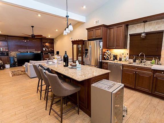What a BEAUTY! Rare 3 bedroom, 2 bathroom, master bedroom featuring master bathroom, huge closets, including a shoe closet! Open floor plan, beautiful kitchen with a huge island, wood burning fire place. Great for intimate family night or entertaining! Fully finished basement. Space for an office, theater room, possibilities are endless. Tons of storage, laundry including brand new machines. Oasis like backyard, brand new saltwater pool, Jacuzzi hot tub, that is complete with color changing lights, controlled by a remote. Mini shed perfect for storage or lounging! 2 car detached garage, that can be converted into a gym, or used to for storage, the possibilities are endless! Also included, 3 parking spaces on the driveway!! This is a MUST see! Short term options available! Step into paradise with this stunning home that perfectly blends elegance and comfort. Featuring soaring vaulted ceilings, gleaming hardwood floors throughout, and thoughtfully designed accent walls, every detail speaks luxury. And just when you think it can't get any better, step outside to your own private retreat with an unbelievable saltwater pool. Experience the lifestyle you deserve. Live in the lap of luxury today.