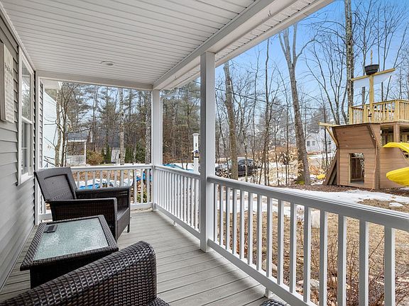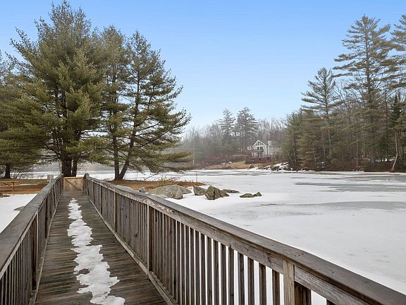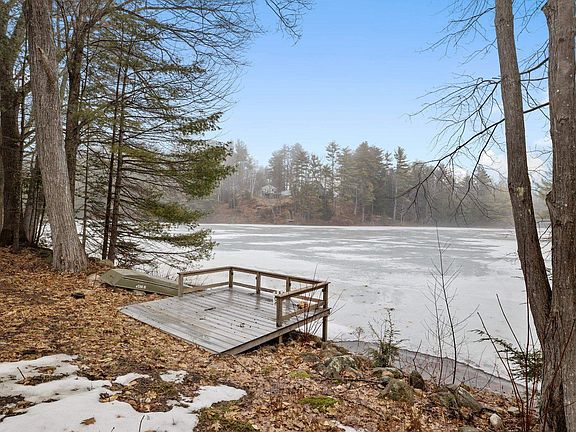 Like new one level home overlooking small recreation pond and rights to both Locke Lake and Halfmoon Lake. This quality built home offers small farmers porch entry to open concept large livingroom with walkup attic (potential more finishable livingspace) , open to fully applianced kitchen with granite tops , white cabinets, breakfast bar, sliders to large deck overlooking pond, and open to large formal dining area; small hallway enters second bedroom and main bath and master bedroom with masterbath; walk down to lower level for large open family room and uitility room with storage room; attached 2 car garage offers storage by pull down stairs for more finishable area. Just under 1/2 acre lot offers raised beds, some hardscape and landscape, sloping lot which enters to small fishing pond... Rights to two lakes, tennis, golf, pools for low annual fee and 1/2 hour to Gunstock for winter skiing.. Great year round or vacation/investment home...Showings begin at open house on Sat, March 19, 11:30-1:30