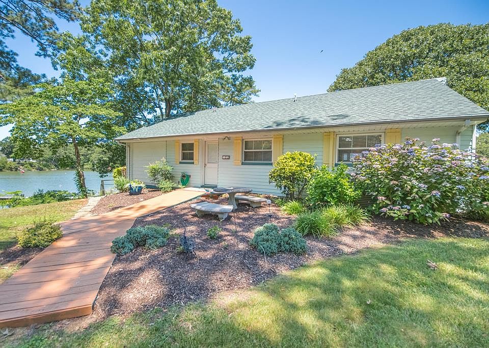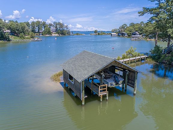 Quintessential Deltaville waterfront cottage boasts AMAZING VIEWS, super pier and boat house. Situated on a private .5 acre point lot, this cottage lies completely out of the flood zone and has panoramic water views of both Hunton Creek and the Rappahannock River. This adorable 1220 sf low maintenance cottage features a waterfront screen porch, darling kitchen, living room with stone surround gas fireplace, 3 bedrooms and 2 baths. The pier with the 3 sided boat house has 2 bays, electricity and water and MLW of 3-4 ft. In addition there is a custom kayak storage rack and a very easy launching area. Newer HVAC with high efficiency gas furnace and brand new central air. Some lovely upgrades have taken place in the past couple of years including new windows and ceramic tile floors in all bedrooms.