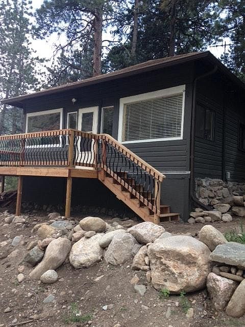 Home cabin located 20 minutes to Estes Park, 20 minutes to west Loveland. Located across private bridge, cabin has lovely deck overlooking Big Thompson River, back porch is three season glasses in with national forest behind. Main cabin is insulated and heated with wood burning stove, and/or propane heat. Full kitchen and bath, one bedroom, and front glassed porch. Room to park two cars in front of cabin. Renter responsible for utilities and pumping vault. Dog allowed with $250 cleaning deposit, sorry No cats, No smoking! Prospective renters must fill out rental application with references. Use Colorado Rental application found at: Bring completed application to Open house April 27 10:30-1:00 RestU cabin is located in Big Thompson Canyon 20 minutes from Loveland and 20 minutes to Estes Park. This cabin backs up to national forest, so looking for renters of like mind. IF interested you need to provide: 1. Name/ages of all occupants 2. Place of employment of all occupants with HR phone number for references 3. Credit rating score 4. Present landlord and phone 5. Any additional info that might appear on background check Thank you for your interest. Note that the house will be shown after rental information is verified.
