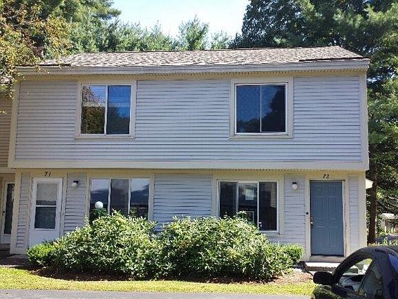 Question: What do you get when you take a standard condo unit and add a myriad of architectural details? Answer: A lovely, contemporary 72 Morningside Commons. Special features include: recessed ceiling lighting throughout, floating ceiling in the dining area, custom frosted glass doors on kitchen cabinets and bedroom closets, shelving with lighting recessed into walls, granite window sills, a full-length mirror and shelving unit in the foyer, stainless steel appliances, energy efficient toilets, jetted bathtub, and tile, laminate and marble flooring. Much is new or almost new, including the propane boiler, flooring throughout, kitchen and bathroom installations, washer and dryer, and all appliances. This end unit enjoys extra windows as well as the many amenities of the condo complex. Sellers will leave some furniture, including the TV stand, dining table and chairs, bathroom storage unit, living room wall shelves, wine glass holder, curtains and blinds. Come see! Home Warranty included.