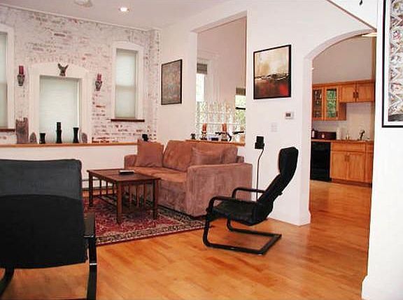 Start AUGUST 1, 15. Walk 9-10 min. to DAVIS T via bikepath! Walk to PORTER! Pets OK/negotiable. EXCITING LOFT-STYLE 2.5 level SINGLE FAMILY HOUSE with 2 bedrooms PLUS large STUDY or OFFICE, 2 full BATHS, 2-CAR PARKING, large PRIVATE PATIO and GARDEN. On Morrison Ave near Rogers Ave, one min. around the corner to BIKEPATH ACCESS and Lexington Park, a great CHILDREN'S PARK. Built in 1997 and lead-free. SPACIOUS at 1319sf, with 10'-12' ceilings, hardwood floors. Large living or living/dining with EXPOSED BRICK, opening to large fully-applianced CHERRY STAINLESS eat-in kitchen with DOOR to PATIO and GARDEN. Top floor MASTER bedroom SUITE with full bath, PRIVATE DECK, cathedral ceilings. Custom cellular duette shades and ceiling fans. Laundry and storage in basement. Exterior storage shed. Mini-split built-in air-conditioners for cooling/heating, plus 2-zoned gas hot water system. Fully insulated. Tenant pays gas (includes heat, cooking), electricity, and water.