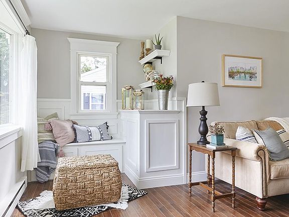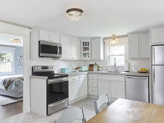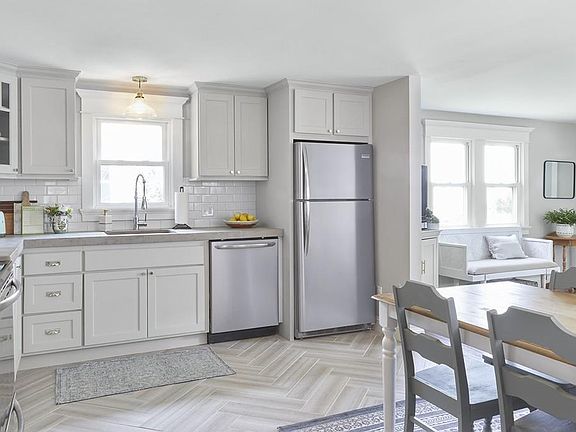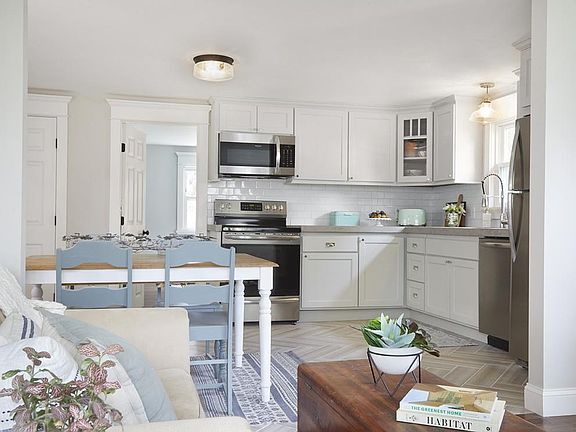 Just a short distance from Easthampton's downtown, parks, & bike path, this stunningly remodeled Arts & Crafts bungalow has everything you need! Featuring custom built-ins and trim work this home is truly special. The open concept living level highlights a spacious kitchen with herringbone tile floors, concrete countertops, custom maple drawer cabinetry, and all new stainless-steel appliances. Solid hickory hardwood floors run throughout the master bedroom, walk-in closet, and extend to a sun-filled living room. A reading nook provides added function and seating to the living room and the storage continues in a mudroom perfect for New England weather. A full bath with a subway & marble tiled shower completes the main floor. Downstairs to the basement is a finished office/guest space along with 2 partially finished rooms, washer, dryer, and ¾ bath. Complete with updated 200 amp electrical service, a great backyard, and patio, this property has everything you could want!