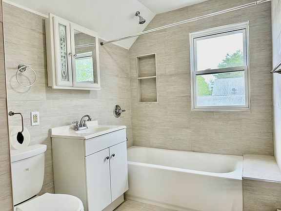 Third floor unit conveniently located a block from the train station with 2 bedrooms and 1 full bathroom. Recently renovated kitchen consisting of new appliances, counters, cabinetry and new flooring. Full bathroom with a new tub (1 year old) , vanity and ceramic tiles throughout. All hardwood floors have been refinished and all windows in the unit have been replaced. Laundry area recently installed in the unit with never before used washer and dryer. Large parking lot with plenty of off street parking in addition to on street parking.Closed to transportation, shopping, highways and so much more Yearly unfurnished