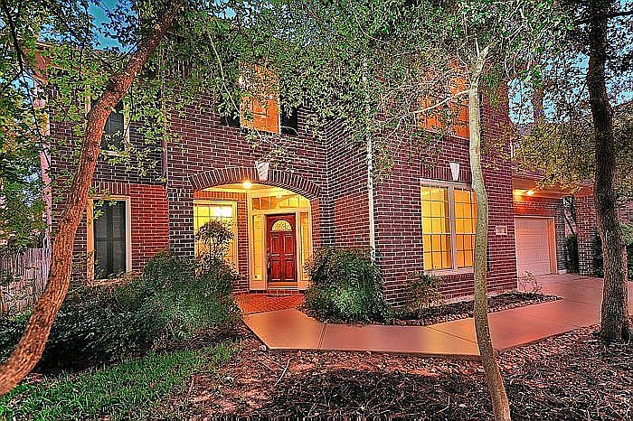 Fabulous 5 bedroom home in Alden Bridge. Wonderful location convenient to shopping,parks & great schools!Immaculate,neutral paint,soaring ceilings,crown molding.Recent updated lighting, hardware & new dishwasher!Hardwood entry opens to formal dining & study w/built-ins. Kitchen w/breakfast bar,stainless appliances & large pantry.Two story den w/gas log fireplace,master suite down, game room up.Private wooded lot w/mature trees & deck.Landlord will maintain yard. Washer/Dryer/Fridge included.