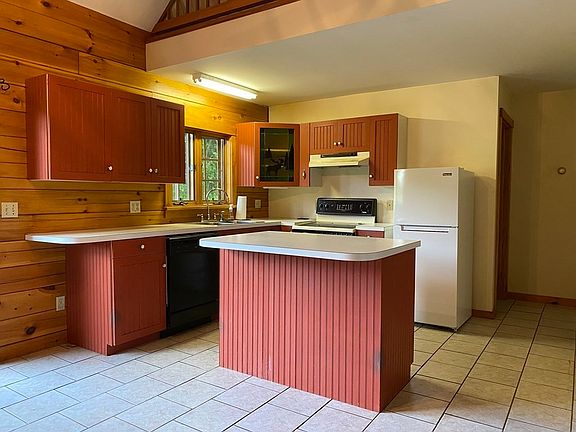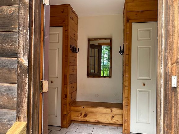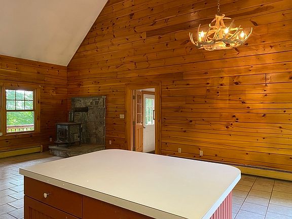Cute and cozy contemporary style Log Cabin on a hill set in the woods on the edge of a meadow…a rare combination so close to town. Have a rocking chair and a cold drink on the front porch every evening and watch the sun set over the Conway mountains. Inside you’ll find an open concept, cathedral ceiling with one bedroom and one bath downstairs and another bedroom and bath upstairs. Two car attached garage makes it easy for entry in rain or snow. You’ll also find a coat room with closets. 15 acres gives you plenty of space for enjoying the outdoors or to create your own walking paths. House needs TLC, but well worth the investment!