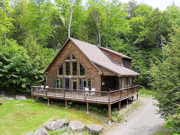 Beautiful chalet style home in Greenville Maine. Make this your vacation home or year around residence. This cabin is off a private road near Moosehead Lake away from logging trucks and traffic with easy year round access. Enjoy the many perrenial plants scattered thoughout the property and Maine wildlife watching right off the porch. Natural spring in the back attracts wildlife. Find pleasure walking and hiking and also enjoy the convenience of nearby dining and shopping just 5 miles away. Not to mention, you will love being close to attractions, services and events in Greenville. Property has an extensive rental history and can be purchased with the waterfront property at 71 Nelson ave. as a package business.