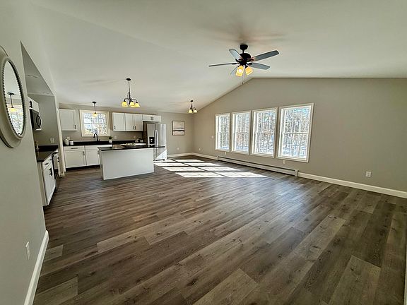 Come take a peek at this new, stunning 1300Sq ft Home. It features three bedrooms, two full baths including the primary with its own bathroom. The home has a cathedral ceiling with an open concept kitchen, dining and living room. The kitchen also offers a walk-in pantry, stainless appliances, and beautiful granite countertops. Plenty of space to entertain and prep for cooking. The washer-dryer hookup on the first floor is in the main bathroom. The basement is split in half with easy access to the two car garage underneath plus plenty of storage space. This property sits across the street from Lake Sherburne, which has deeded access to the public area on the lake. Time to enjoy the lake life with fishing, swimming or boating! The house is adjacent to 4000 acres of conservation land and unlimited walking trails. This is the place to be!