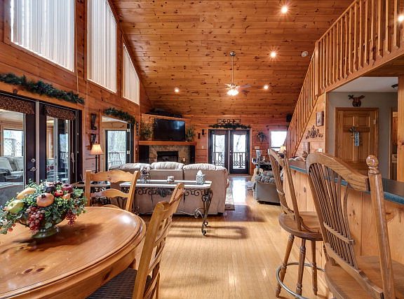 ONE-OF-KIND MOUNTAIN VIEW LOG CABIN ON 3.88 ACRES WITH POOL.Cabin features log interior,vaulted ceilings,hardwood floors and a wall of windows that boast a fantastic view of the mountains and rustic stone fireplace.The kitchen is spacious and looks out to the great room and dining area.Off of the great room is the sun room with the indoor pool.The huge loft area overlooks the pool.The master has a private bathroom with access to deck.Finished lower level with outside entry can be used for guests with a full kitchen,family room,bedroom and bath.The covered deck is ideal to dine in surrounded by the views or enjoy your morning coffee in the crisp clean mountain air as you watch the sunrise.