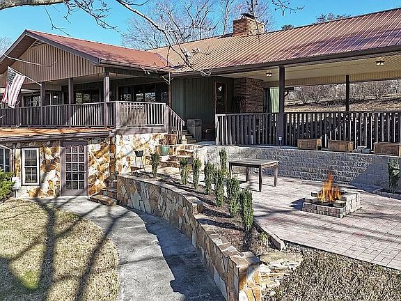 Lodge ranch style home on 3.52 acres in Blairsville Ga. This Unique 3 bedroom 3 bath home has a tremendous sunset long-range view of the North Ga mountains from almost every room. Walk into a fully furnished well-maintained home. Kitchen offers leathered granite counter tops, Samsung gas range, porcelain flooring, custom wood cabinets. Family size Dinning room has a 9ft farmhouse table with 8 chairs, ready for any event! The Living room is spacious and has unique wood Valances over plaza doors and large roll out Pella windows, a custom cedar Mantle over a closed-door cooking fireplace with built in warming oven that keeps the whole area nice and warm. The Primary suite has a Jacuzzi tub and his and her