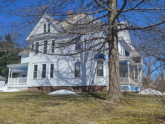 This grand Victorian home is located on desirable Oak Street and is an easy walk to all that downtown Brattleboro has to offer. The oversized lot is level with expansive lawn and plantings. There is a detached 2-Car garage with overhead storage and 2 large covered porches, one with ceiling fan for those Summer months. This beautiful period home is accessed via original double doors w/stained glass and into the spacious entry with hardwood flooring, beautiful staircase and Powder Room. The Kitchen is large with wood flooring, ample cabinetry, Pantry and Pantry Nook---adjacent is the Mud Room with door to the side porch. There is a Formal Dining Room, Family Room with gas fireplace & built-in bookcases, Formal Living Room w/ period chandelier, Den (or 1st floor Bedroom) with fireplace (not used) and Laundry with soapstone sink, folding area & lots of cabinets with shelving----all rooms with beautiful hardwood flooring. The 2nd level includes a large Landing off of which are 4 spacious Bedrooms (2 with en suite 1/2 Baths) and a common Full Bathroom. The back rooms are accessed by a rear staircase and includes a charming Bedroom and an Office/Nursery. Other features include: Double hot water system (1 for each level), gorgeous Bull-Nose moldings and a charming Grape arbor with patio. A wonderful in-town offering!!! Delayed showings until Wednesday, April 3rd.