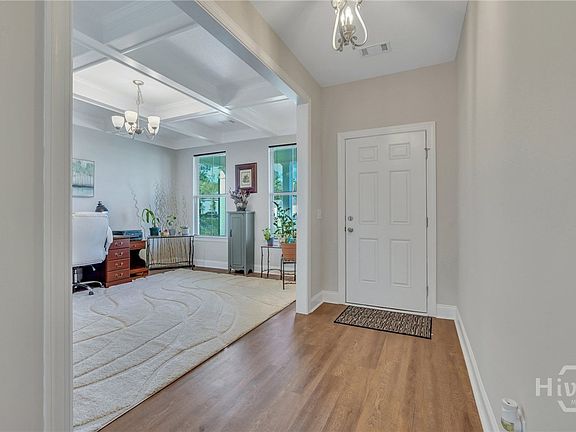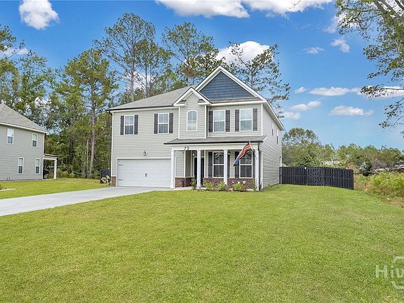 Tucked in a sought-after Effingham County community, this stunning nearly 3,000 sq. ft. Faircloth-built home blends elegance and comfort, with 4 spacious bedrooms and 3.5 baths including a private ensuite. Step inside to discover refined craftsmanship throughout, from coffered ceilings to an open-concept living space beautifully anchored by an electric fireplace. The chef’s kitchen is a true showpiece, featuring granite countertops, stainless steel appliances, an oversized island, walk-in pantry, and a breakfast nook. Homeowner upgrades enhance outdoor living with a fenced backyard, extended concrete patio, lush sod, a new shed with electricity, backyard sprinklers, and flood lighting. Inside, thoughtful additions include storm doors, custom window blinds, stylish ceiling fans, and premium kitchen fixtures for added comfort and convenience.