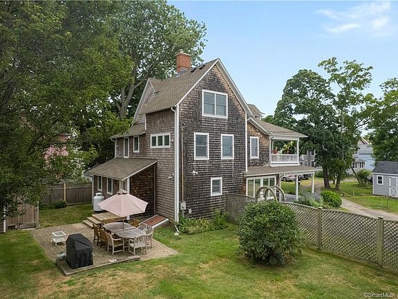 Charming colonial retreat with breathtaking views! Welcome to your private oasis nestled on a tranquil, private road with sweeping marsh and Long Island Sound views. This stunning 6-bedroom, 4-bath home boasts an array of features designed to provide comfort, luxury, and a connection to nature, all less than a block from West Beach. As you step inside, you'll immediately feel at home in the warm and inviting atmosphere. The main level offers a delightful sitting room, perfect for relaxing and enjoying the picturesque scenery. The family room features a majestic stone fireplace, creating a cozy ambiance for gatherings with loved ones during colder months. The spacious kitchen is a chef's dream, complete with granite countertops, ample cabinet space, and a delightful eat-in area. The first floor also houses a full bathroom with a convenient stall shower, a tile floor, and a laundry hookup, making daily living a breeze. Retreat to the second floor, where you'll find the luxurious primary bedroom suite with not one but two closets and a private full bath, offering the perfect sanctuary after a long day. Two additional bedrooms and another full bath provide ample space for family and guests, and a second floor sleeping porch promises unforgettable views and relaxation. Venture up to the third floor, where three more bedrooms and another full bath await, providing versatility and room for everyone to have their own space. The outdoor features of this property are equally impressive, designed to harmonize with the natural surroundings. An outdoor shower is perfect for refreshing after a day at the beach, while the large fenced yard offers privacy and space for outdoor activities. Additionally, a Kloter Farms shed provides secure storage for your kayaks and bikes, making it easy to explore the surrounding area and its natural beauty. Don't miss this incredible opportunity to own a slice of paradise in a desirable location with captivating views.