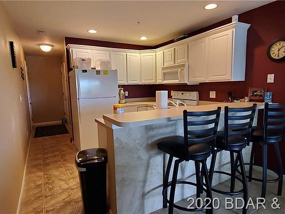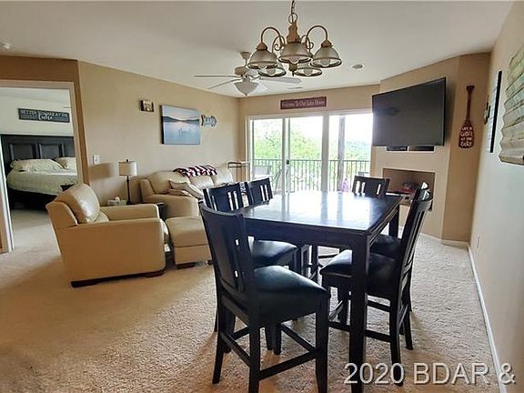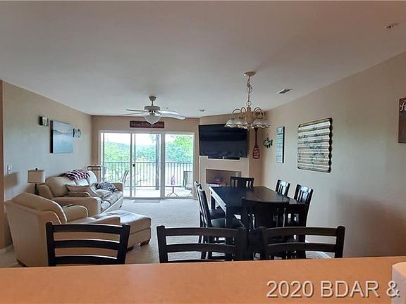 Fabulous view from this 3 br 2 bath condo in the beautiful state park at the Lake of the Ozarks. Newly painted and ready for you to enjoy. Gaze at the stone cliffs on the other side of the lake from your large deck. Tile warms the entry, kitchen and baths. Carpet keeps your feet warm throughout the rest of the condo. So conveniently located within the complex because it's right across from the pool and clubhouse with exercise room inside. The playground is close too. A 12x30 boat slip is included. Assessments include water, sewer, trash, internet, cable and all amenities. 3 bedroom units in this location don't become available very often.