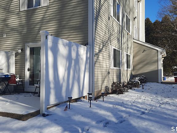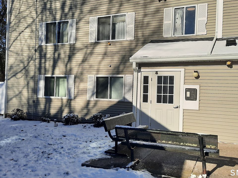Convenient, first floor living in this 1000sqft condo. Enter the secure building to the front door of the unit, and the designated laundry room is on the right. The combined dining and living room is bright, with a southern facing window. There is an electric fireplace that will stay with the transfer. The kitchen has newer appliances, and plenty of cabinets. The primary bedroom has a full bath, and a slider to the private patio that overlooks the woods. A second, full bath is in the hall between the two bedrooms. The windows and slider were replaced about 4 years ago. There are two assigned parking spaces for this unit. The 2026 HOA fee will be $353/month. There are no special assessments. Heritage Pines Estates is professional managed. The new owner will owe the association 2 months of fees upon transfer. Quick occupancy is an option, if needed.