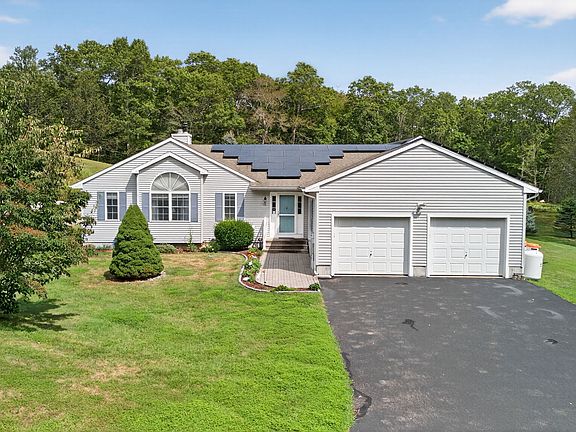 One level living at its best! Beautiful ranch style home featuring cathedral ceilings, a huge living room and a wood burning fireplace. There are hickory hardwood floors throughout the living room, dining room and bedrooms.The kitchen features stainless steel appliances and granite counter tops. The lower level has a large family room for all your 'hanging out' needs. Attached two car garage, shed, deck, a partially fenced in yard and a new whole house generator! Enjoy nature as this home sits on four and a half acres! Solar panels with a payment of only $102.69 a month. Eversource is $9.62 a month (based on calculated rate from the year before).