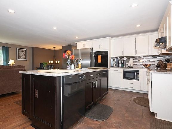 Beautiful split level on corner lot! Kitchen perfect for holidays, updated granite island/countertops, tile backsplash, double ovens, and built in cook top Open concept kitchen/living room, pellet stove and expansive master suite off the living room w/spacious walk-in closet & master bath all updated w/tile, double vanity vessel sinks, relaxing jacuzzi tub & tiled shower with side wall jets.Hardwood/tile throughout main floor! Main bath redone w/glass enclosed marble tile shower, shiplap walls, & washer/dryer. 2 more bedrooms,1 with a pulldown Murphy bed.Downstairs features another full bath and living room & another pellet stove. There is another big room perfect for in-law suite, currently used as a guest bedroom and home gym.The backside of the house feat round 30' swimming pool, 3 season sunroom, staircase down to jacuzzi hot tub, and campfire entertainment area. Property is surrounded by beautiful flower gardens.New windows(2019), roof 2014), vinyl siding 2014). Move in Ready!