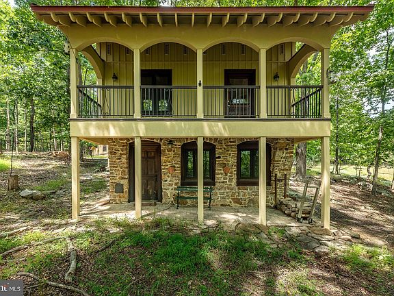 Custom Built Beauty! This home is a one of its kind. Come see this 2-bedroom, 1.5-bathroom home nestled on 10 acres of property. This home features beautiful stone work including part of the stairway in which all the stone was used from the property itself. Stone walls are 2 ft. thick. Inside features include Jerusalem Limestone flooring on the ground floor, in the kitchen & living room, special ordered custom-made Mahogany windows & doors, marble tile flooring in bathrooms, stonework in bathroom tub/shower, old heart of pine flooring on both upper levels, special ordered from NC and radiant floor heating on all levels. The kitchen features a Heartland propane stove and wood coverings on dishwasher and refrigerator to match the cabinets. Enjoy the chilly evening in front of the Stone fireplace with built in natural flow heatilator. The first level features a covered balcony to enjoy the views, wildlife and peace and quiet. The outside features a metal roof and all wood siding made from the popular trees on the property which went through a ten-year curing process. Also has a shed for storage or a workshop. The special features are endless so you'll need to come visit to appreciate everything. Once again, this one is unique so don't hesitate or you may miss out.