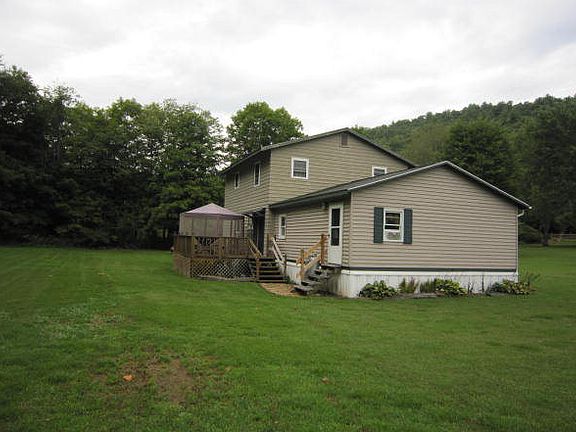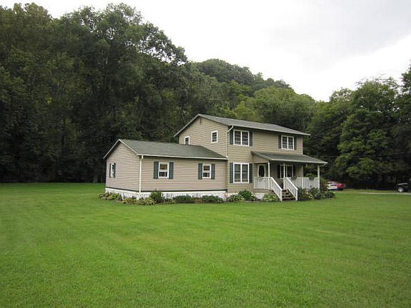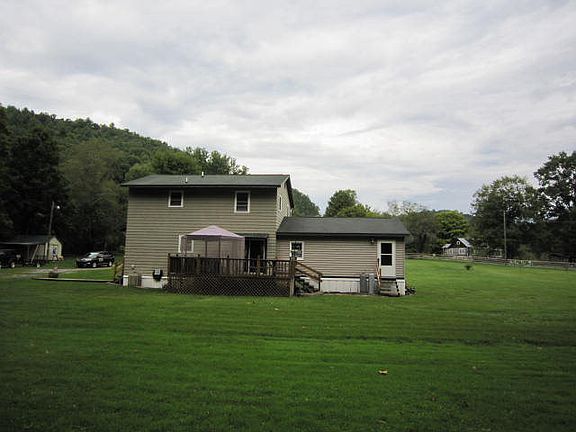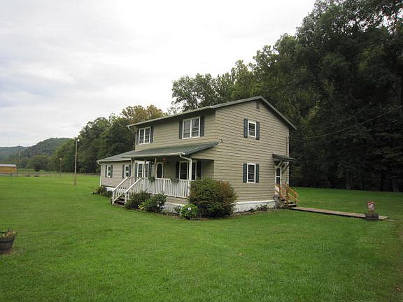 All country living on 3.54 acres. All level and mowable. Partially fenced with Bluestone River in your backyard.. walk out on a great wood deck for that morning cup of coffee with lots of privacy.Four bedrooms..(one could be a den)with half bath off it. Kitchen has slate floor into pantry and W/D..Carpet like new. Roof 10 years old Two propane tanks for fireplace in HUGH family room.