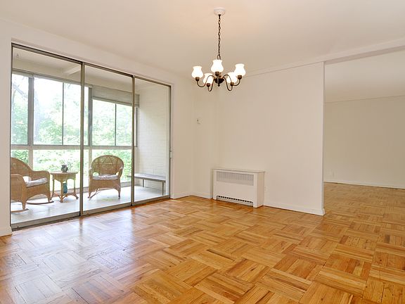 Exceptional Bronxville Village location with contemporary flair! This Doorman building apartment features two-bedrooms two-bathrooms in close walking distance to the Metro North and Village shops, restaurants, library and movie theater. The apartments offers a expansive living room, formal dining room, three season enclosed sunroom, dine-in kitchen, master bedroom with master bathroom, bedroom and bathroom. This apartment features hardwood parquet floors, easy living floor plan, potential for in-unit washer dryer (with board approval), and ample closet space. The property offers a lovely back lawn overlooking the river and a fitness room for residents. The maintenance includes the heat, hot water, electric and real estate taxes. A terrific opportunity!