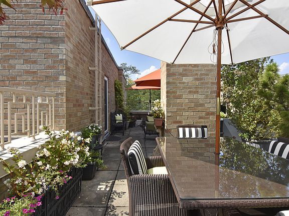 Rare opportunity to own this spacious, loft-like Penthouse, with potential to convert to 3 full bedrooms from 2 with Board Approval! River House's prime location perfectly combines in-town convenience (the train station is a 4 minute walk from the building; stores are 6 minutes and schools are 11 minutes) with lush surrounding foliage, walking trails and Bronxville Lake. ALL utilities included. This 1550 sq. ft. home is bright all day, with north, east & west open-sky exposures and a 400 sq. ft. double rooftop terrace with new irrigation system. The terrace is large enough for cocktails (20-30 guests) or sit-down (comfortably seats a dozen). The newly-created foyer opens to the gracious living room, complete with wood-burning fireplace and corner office area. Large wraparound windows in the dining area offer panoramic views of the surrounding park and the ever-changing waters of the river. It adjoins a bright eat-in kitchen. The master bedroom, currently used as an in-home office, features a generous walk-in closet, adjacent windowed bathroom and new glass door opening to the magnificent terrace. The serene second bedroom also boasts generous closet space. Washer/dryer permitted with Board approval. NOTE: This unit can be converted to a 3 bedroom with minimal construction (see attached suggested floorplan)