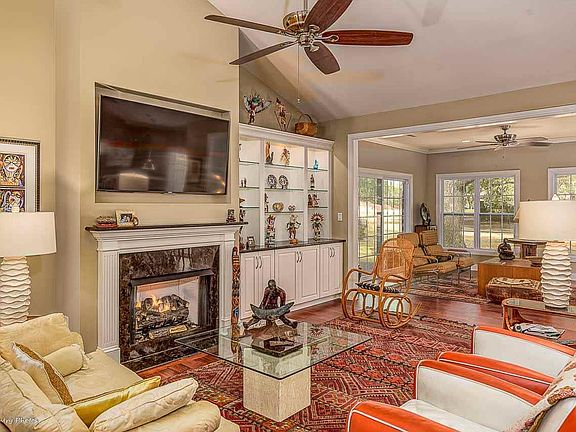Surrounded by Gracious Live Oaks and fabulous golf course views from one of the few updated and newer homes available in Heritage Plantation. Open floor plan that you have been looking for and nothing to do but settle in and enjoy! Upgraded Acacia Hardwood flooring through out all main living areas and bedrooms with tile in bathrooms and laundry. The focal point of this home is the Living area with vaulted ceiling, gas fireplace with granite surround, built in cabinetry with lighted shelving and the Carolina Room with a breathtaking wall of windows/doors that draw you to the outdoors. Beautiful custom cabinets in the Kitchen with Brazilian Granite and tile back splash, Bosch & Kitchen Aid Appliances that is open to the living area for easy entertaining. The Master bedroom has convenient patio access for your morning coffee and a master bath that is like a Spa retreat. Exquisitely Tiled, Frameless Glass shower with Hansgrohe temperature control and Hansgrohe faucets for whirlpool tub and sinks, granite counter. Spacious master closet offers custom shelving. Crown molding, recessed lighting, paver patios are a few of the many upgrades too numerous to list! Location is convenient within the plantation to the on-property marina and gathering deck on the Intracoastal Waterway, Owners Clubhouse with fitness room, pool, tennis courts and the on-site Heritage Golf Club. Fine dining, shopping and within five minutes to the beach, all a part of this rich Southern Life Style. All measurements and square footage are approximate and not guaranteed. Buyer is responsible for verification.
