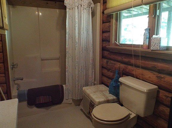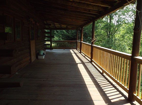 Nicely hidden mountain retreat. Log Cabin on 58+ acres. Kitchen & Living Room & Bathroom on first floor. Second floor is unfinished can make 3 bedrooms. This log cabin has a complete wrap around porch.
